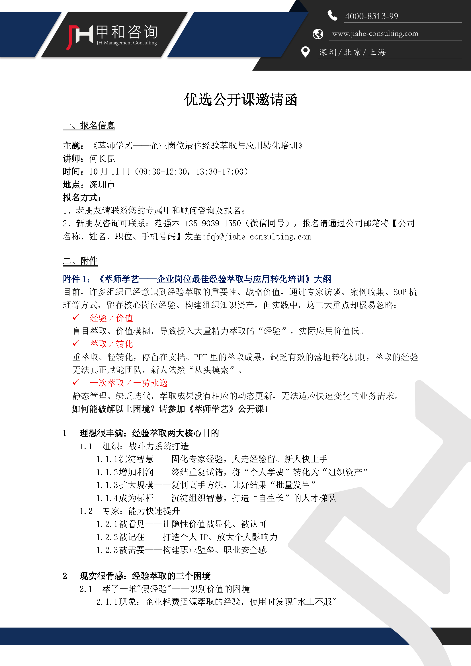 10月11日甲和咨询《萃师学艺》优选导师品鉴课邀请函【深圳】